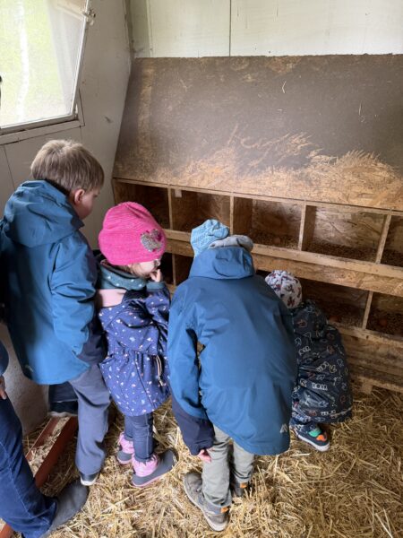 Mit allen Sinnen erkundeten die Kinder den Hof: Sie durften die Tiere aus nächster Nähe betrachten, Fragen stellen und selbst aktiv werden. Dabei wurde schnell deutlich, wie wichtig ein verantwortungsvoller Umgang mit Tieren ist und woher unsere Lebensmittel eigentlich kommen.
